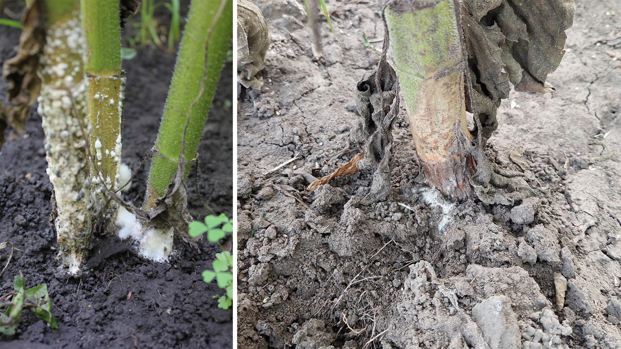 Склеротиніоз – хвороба, що розвивається двома шляхами та здатна вражати усі органи і частини рослин соняшнику.