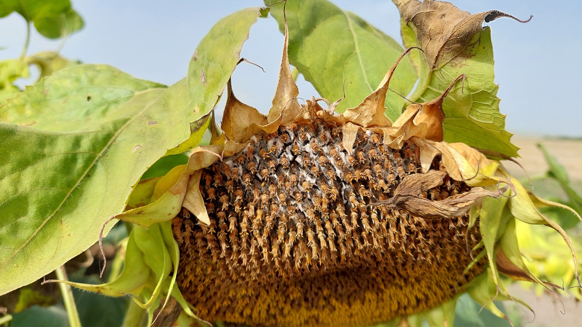 Біла гниль, або склеротиніоз (Sclerotinia sclerotiorum), здатна суттєво обмежити урожай насіння соняшнику.