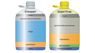 Особливістю препаративної форми фунгіциду Осіріс® Стар є втричі вищий вміст спеціальних специфічних органічних розчинників, адювантів, прилипачів, полімерних комплексів порівняно з уже існуючими на ринку препаратами та відсутність у його складі води.