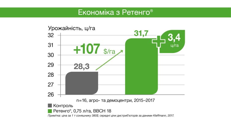 - підвищує якість урожаю та вміст олії у соняшнику