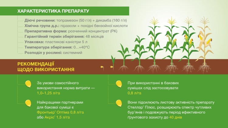 • Наявність топрамезону створює додатковий ґрунтовий захист від бур’янів
