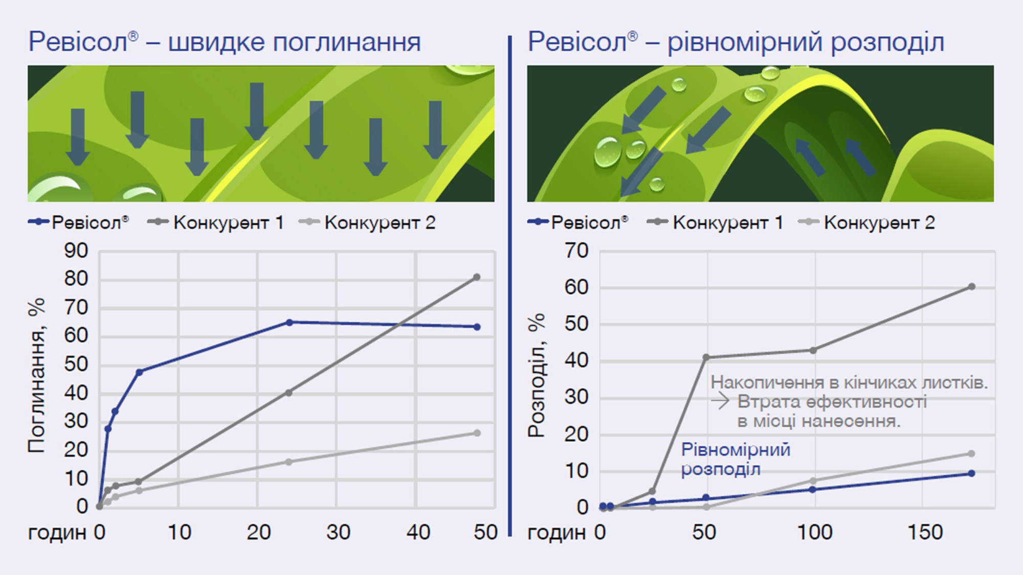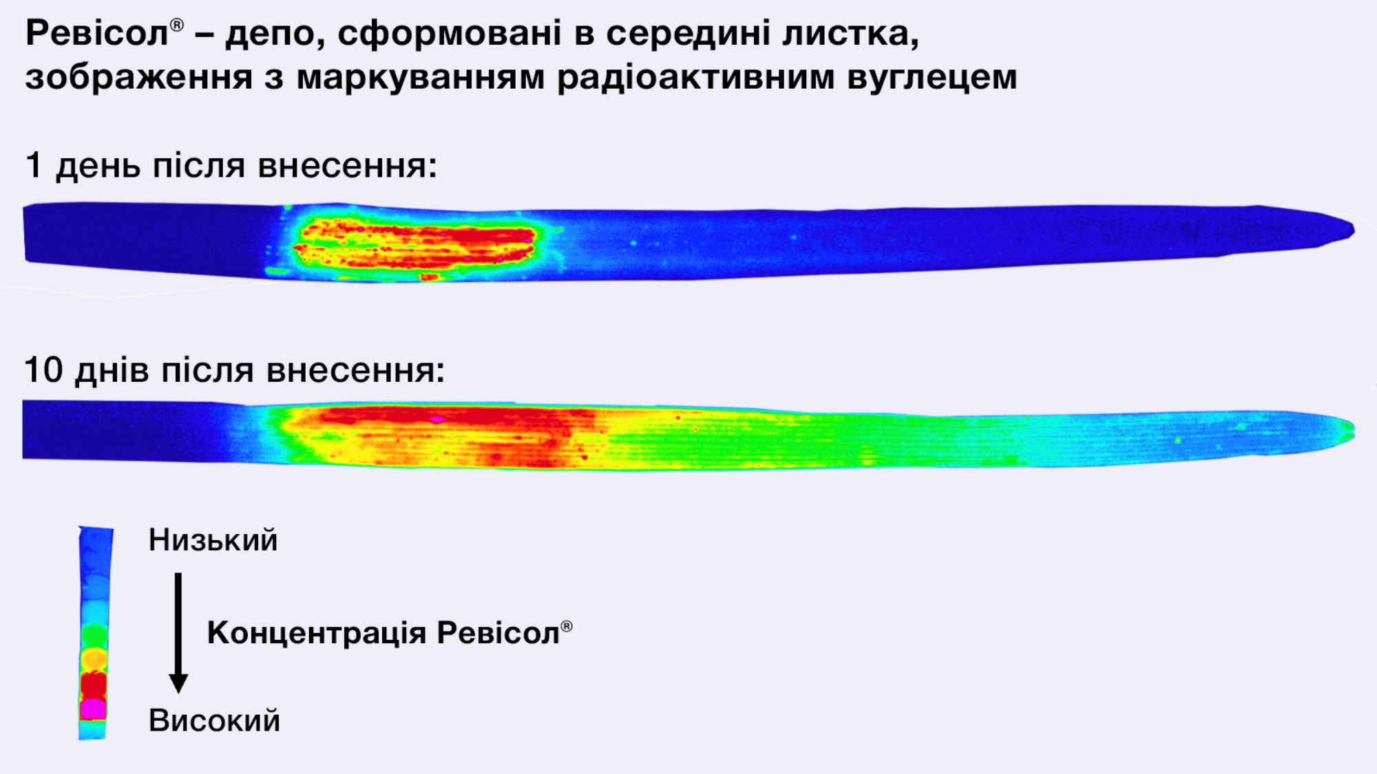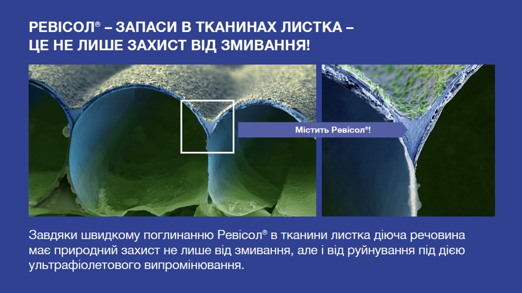 Ревісол® створює запаси діючої речовини (так звані «депо») у листку, які при подальшому вивільненні подовжують лікувальну дію для кращого захисту рослини.