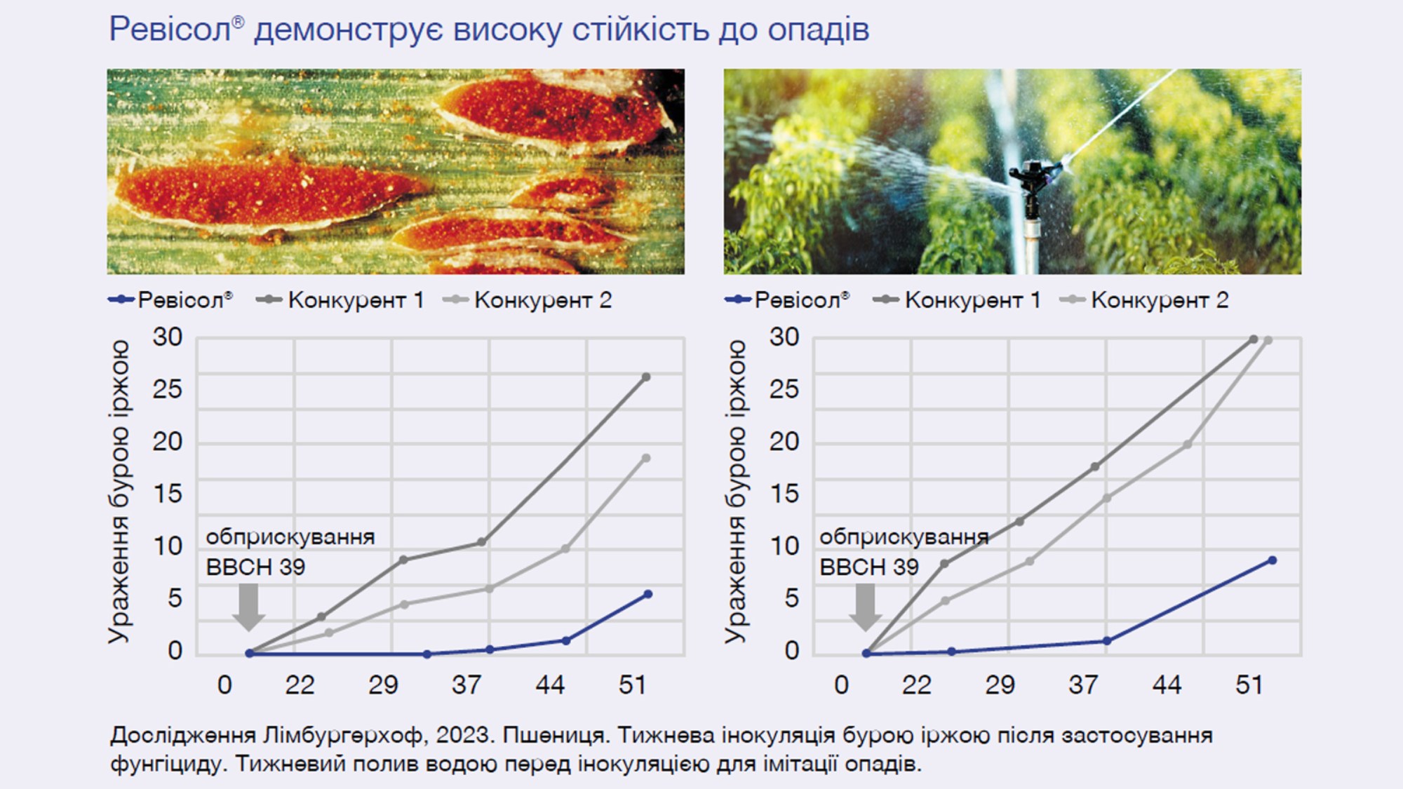 Унікальні властивості Ревісол® забезпечують не лише швидке поглинання діючої речовини рослинами, але й потужну і швидку дію у захисті від грибних хвороб.