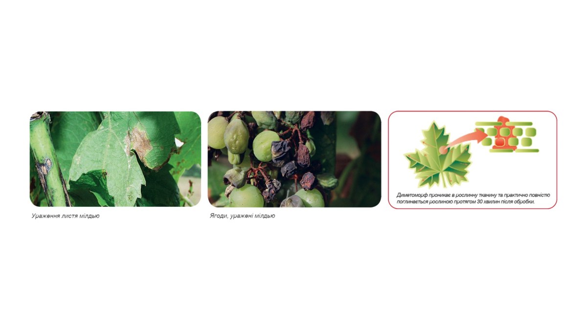 | Діючі речовини | 90 г/кг Диметоморф, 600 г/кг Манкоцеб |
