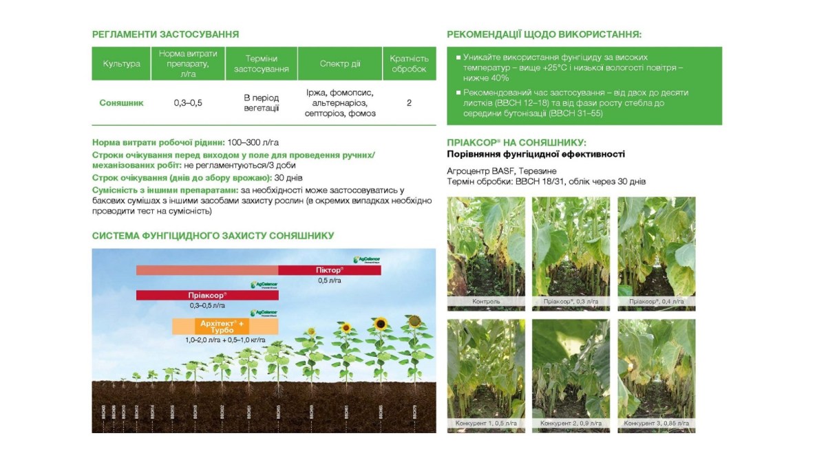 - Ефективний контроль основних хвороб соняшнику, у тому числі іржі