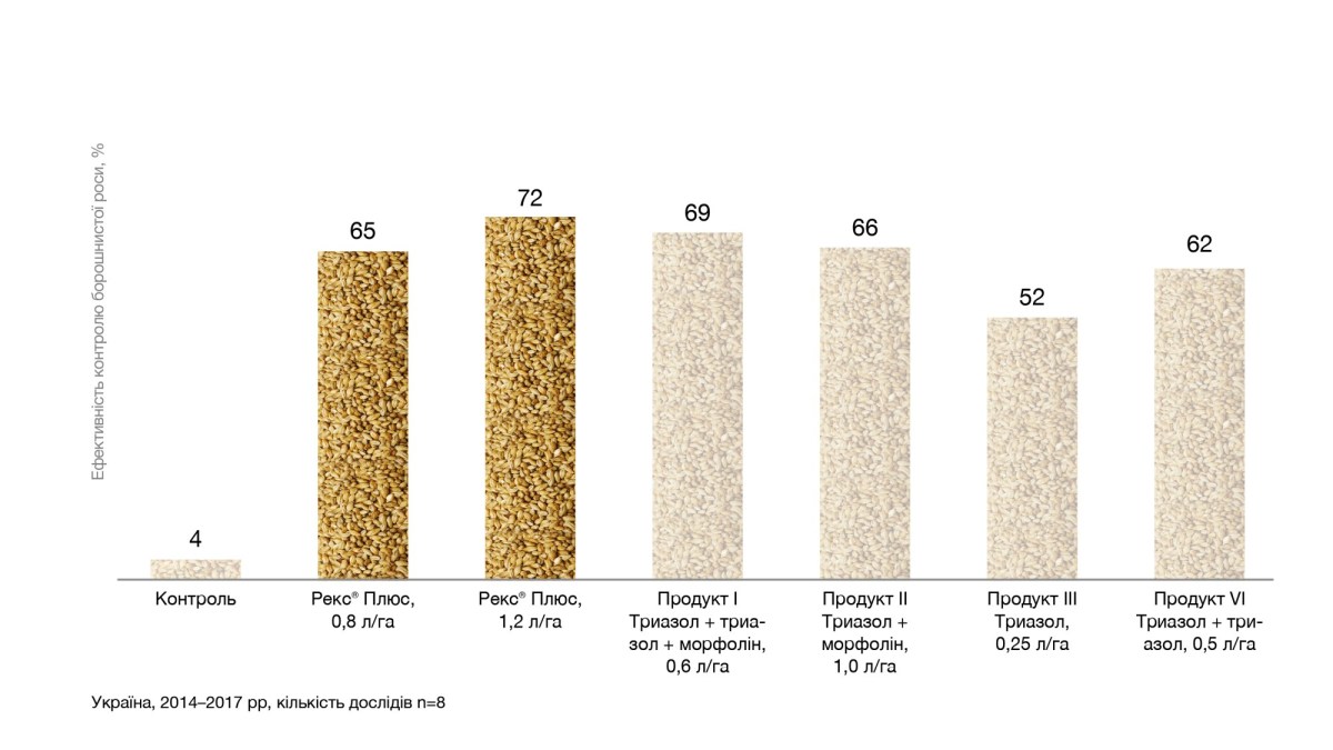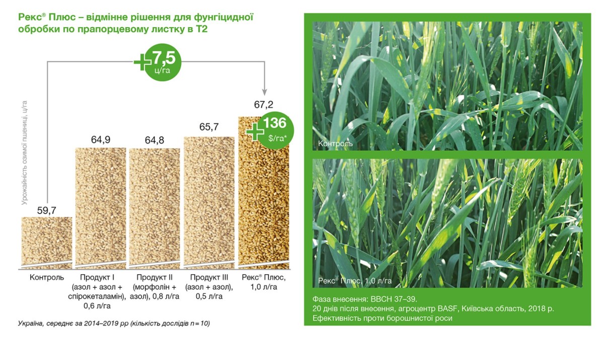 Жито озиме та яре0,8–1,2 л/гаобприскування в період вегетаціїринхоспоріоз, іржа, борошниста роса, септоріоз листя2