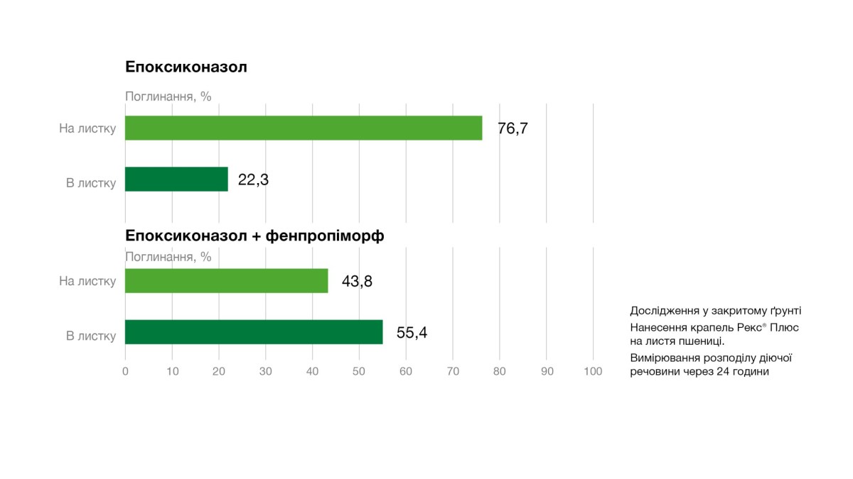 • Швидке поглинання та розподіл у рослині забезпечують відмінну превентивну й лікувальну дію, що надає ефективного захисту як уже сформованій листовій поверхні, так і новим приростам