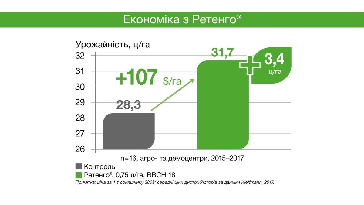 • підвищує якість урожаю та вміст олії у соняшнику