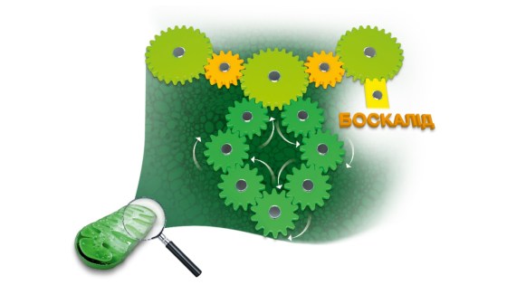 Одна з діючих речовин фунгіциду Сігнум® – боскалід – належить до хімічного класу карбоксианілідів. Боскалід має новий та унікальний механізм дії на збудників хвороб. Він починає діяти там, де цикл трикарбонових кислоті дихальний ланцюг клітин гриба безпосередньо пов’язані між собою в так званому комплексі II, що являє собою центральний розподільчий пункт в обміні речовин гриба. Тут боскалід і блокує процес обміну речовин патогену. Боскалід дає можливість контролювати збудників таких хвороб, як моніліоз, комплекс гнилей, коккомікоз, борошнисту росу, паршу.