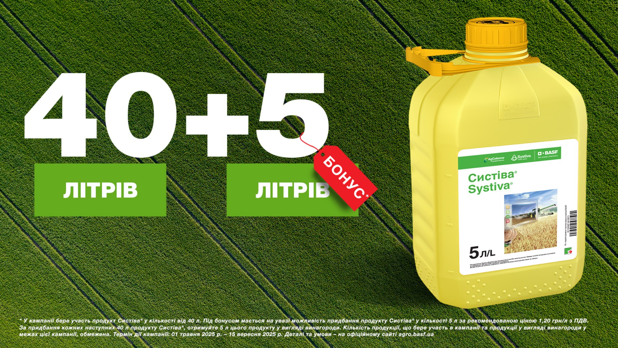 Забезпечити довготривалий захист посівів зернових від хвороб з проростання насіння і до появи прапорцевого листка допоможе унікальний фунгіцид, що наноситься на насіння – Систіва®. Саме час скористатися вигідною пропозицією: купуючи Систіва® у відповідній кількості, отримайте додатковий об’єм продукту в якості бонусу!