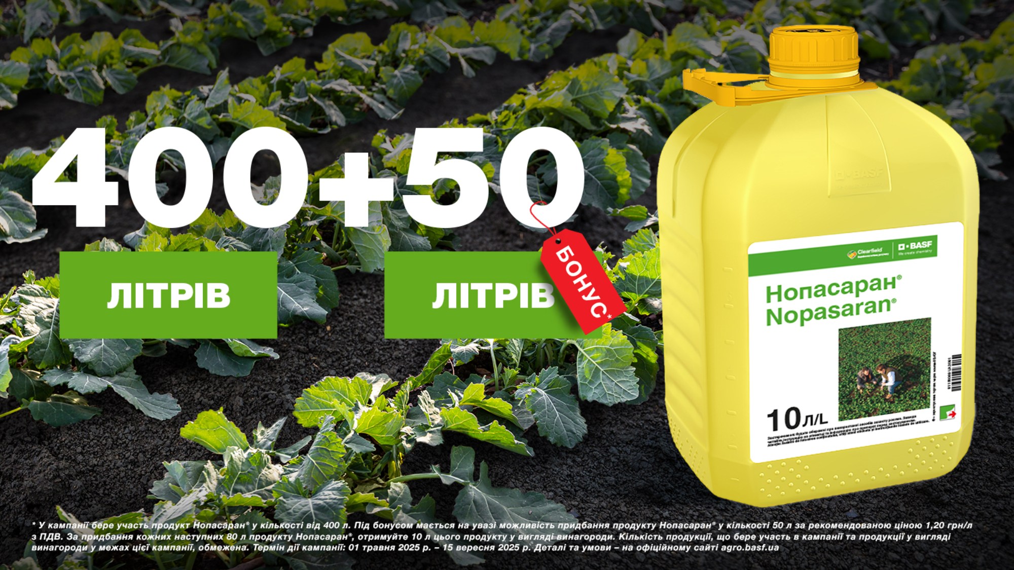 Позбутись конкуренції з боку бур’янів – один із найважливіших технологічних аспектів гарного розвитку рослин ріпаку восени. Гнучкий у застосуванні гербіцид Нопасаран® стане надійним помічником у контролі широкого спектру бур'янів, тому скористайтесь вигідною пропозицією вже зараз: придбайте Нопасаран® у відповідній кількості та отримайте додатковий об’єм продукту в якості бонусу!