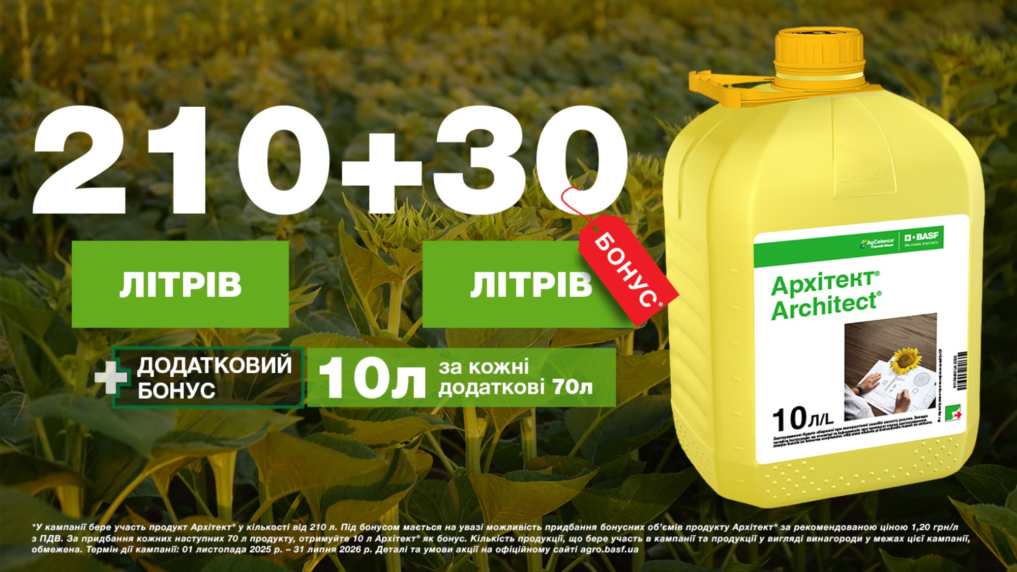 Не пропустіть вигідну пропозицію від BASF: купуючи Архітект® у відповідній кількості, отримайте додатковий об’єм продукту в якості бонусу.