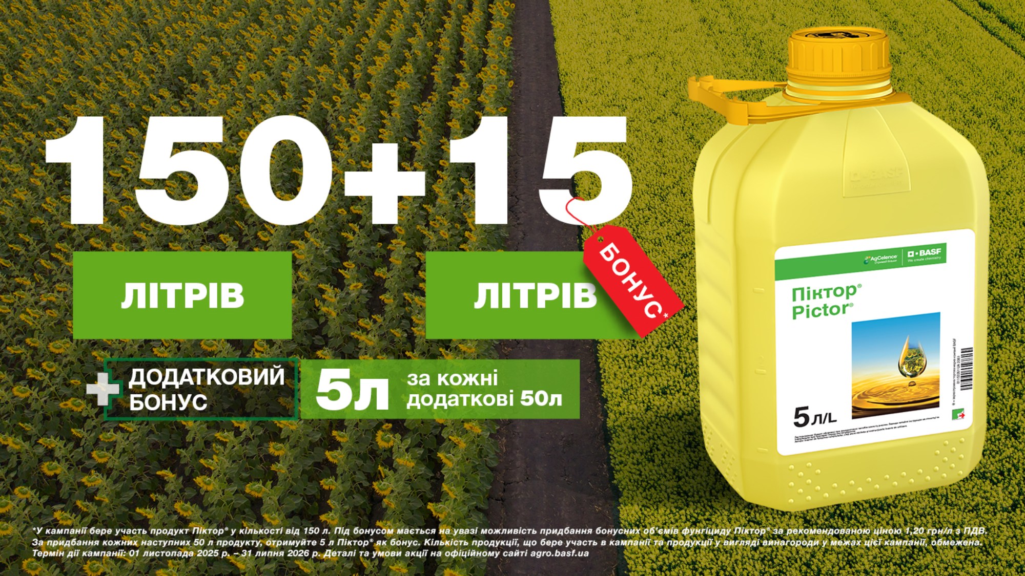 2.1. За покупку від 150 л Піктор®, отримайте можливість придбати 15 л бонусного продукту за рекомендованою ціною 1,20 грн/л з ПДВ.