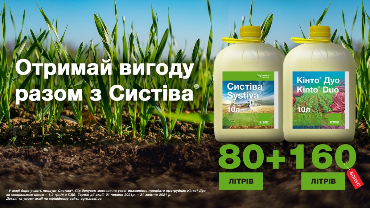 Систіва® – унікальний перпарат і це давно відомий факт! Ми робимо його ще доступнішим для вас: купуючи 80 літрів Систіва®, 160 літрів Кінто® Дуо отримаєте у якості бонусу. Цікаво? Ще б пак! Комбінація Систіва® 1 л/т та Кінто® Дуо 2 л/т на озимій пшениці дозволяє отримати додатково $97* на гектар!